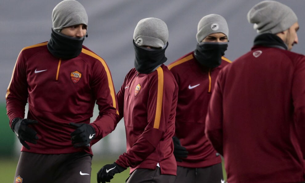 La Roma è appena arrivata alla Khimki Arena, dove alle 18 italiane affronterà il Cska Mosca nella quinta giornata di Champions League. La temperatura allo stadio si aggira sui -4 sotto zero. Naturalmente non ci sono tifosi, visto che l'Uefa ha squalificato lo stadio del Cska per gli incidenti dell'andata all'Olimpico. Campo in condizioni imperfette però: sotto a uno strato di erba gelata c'è molto fango.